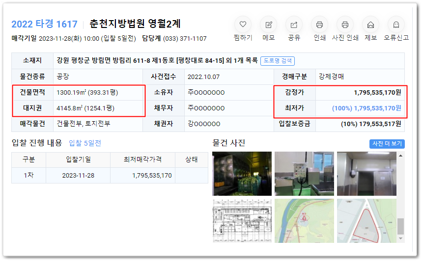 오늘 추천해 드릴 물건은 사건번호 2022 타경 1617 강원도식품공장경매 물건입니다..