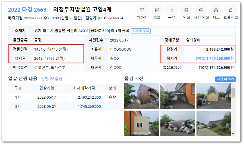 경기파주공장경매의 사건번호 2022 타경 2663입니다.