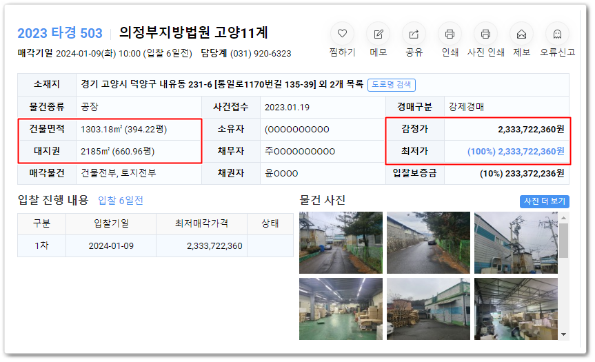 오늘 추천해 드릴 물건은 사건번호 2023 타경 503 고양시공장경매 물건입니다..
