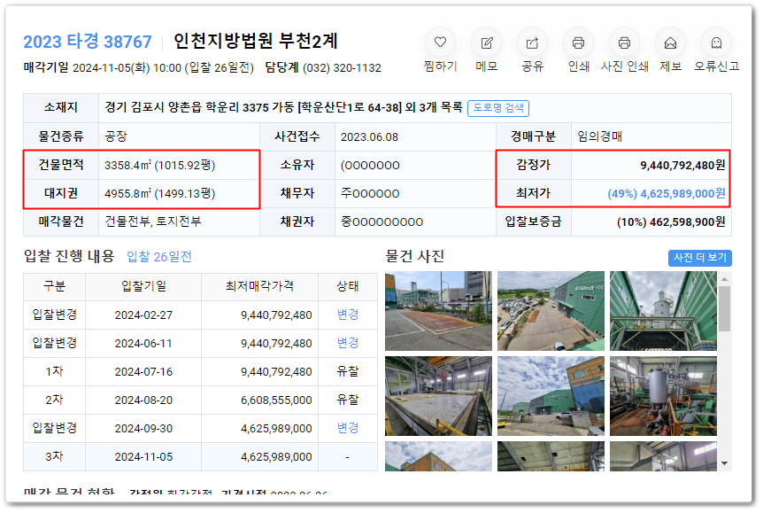 오늘 추천해 드릴 물건은 사건번호 2023 타경 38767 김포공장경매 물건입니다..