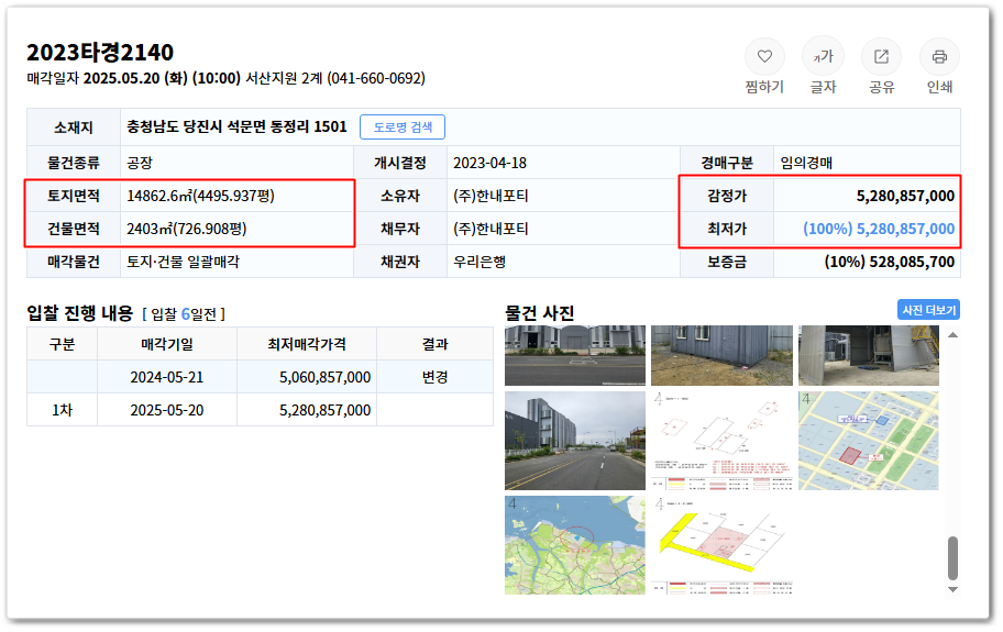 당진시공장경매 충남 당진시 석문면 공장경매전문 2023 타경 2140