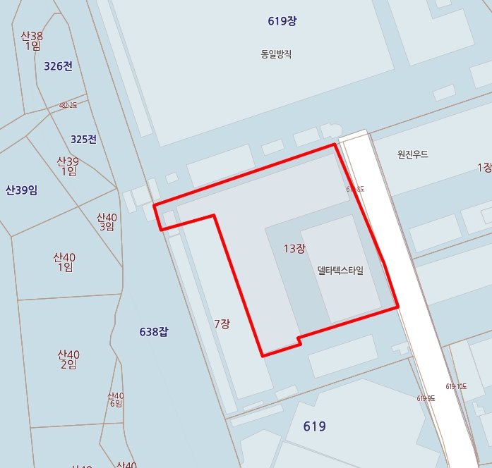 공업지역의 토지 995평에 건평 906평으로