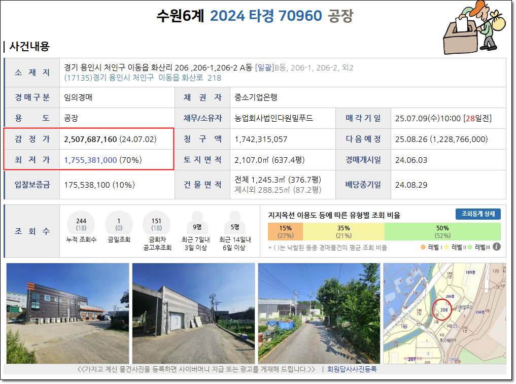 용인시공장경매 물건지 주소 및 개요