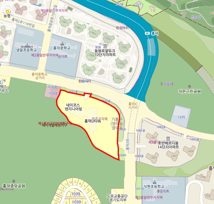 용인시 기흥구 영덕동 흥덕중학교 남동측인근에 위치해 있으며