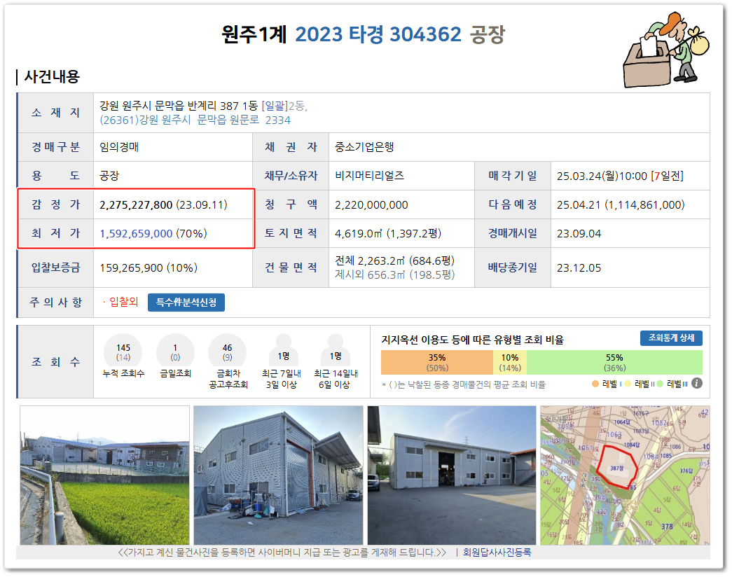 | 원주공장경매 강원 원주시 호저면 공장경매전문 2023타경304799 (1) | 2025.01.03 |