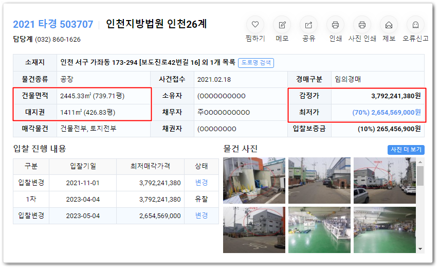 인천공장경매의 사건번호 2021 타경 503707입니다.