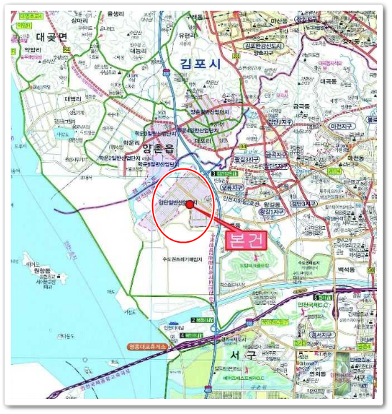 검단양촌 IC가 소재하여 공장으로서의 제반 교통 무난한 편입니다.