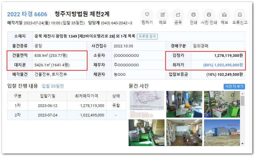 제천공장경매의 사건번호 2022 타경 6606입니다.