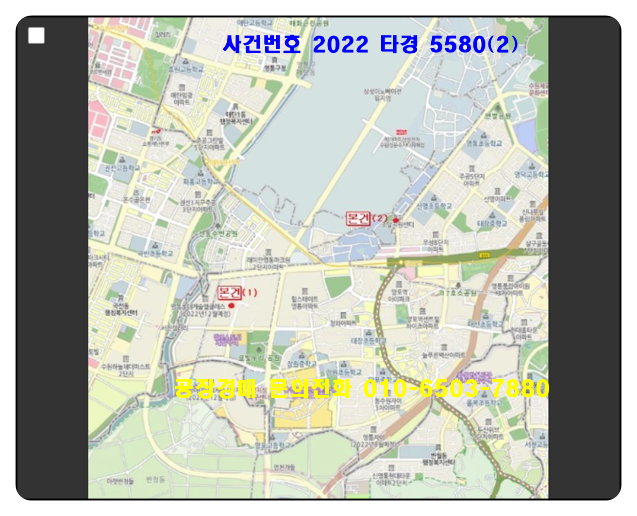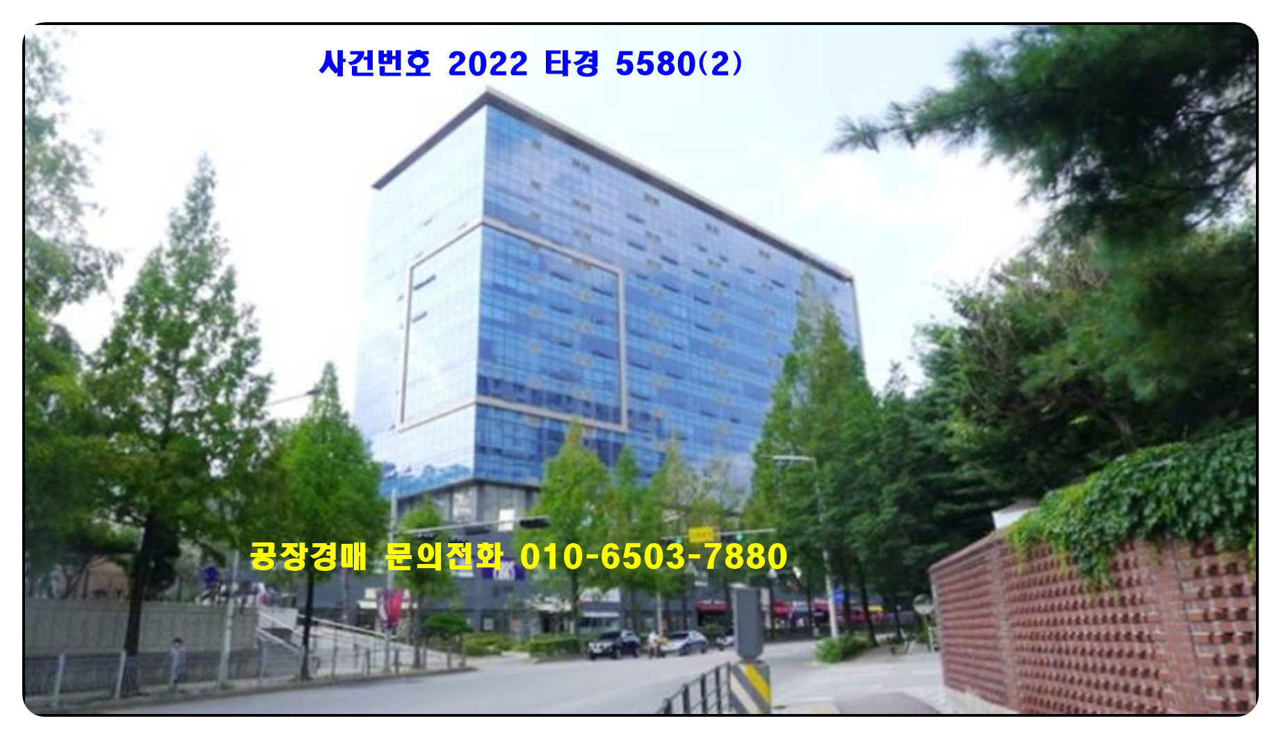 지식산업센타경매의 사건번호 2022 타경 5580(2) 입니다 .