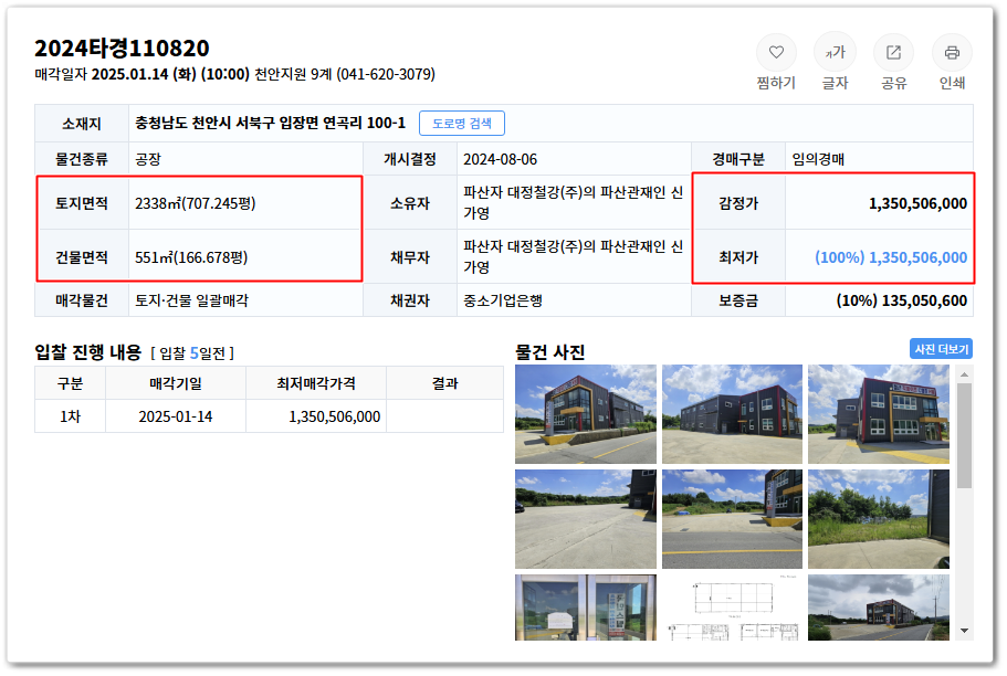 천안공장경매 충남 천안시 서북구 입장면 공장경매전문 2024타경110820 본문
