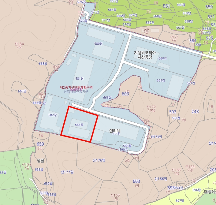 계획관리지역, 산업개발진흥지구내 토지 2,813평에 건평 1,604평으로