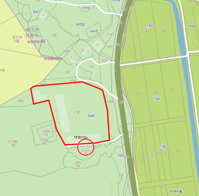 물건지 주소: 충남 서산시 해미면 삼송리 646-21 가동,나동,다동