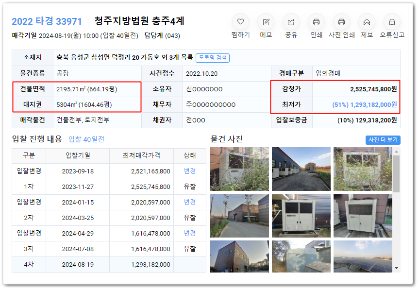| 충주공장경매 충북 충주시 대소원면 공장경매전문 2022타경1325(5) (0) | 2024.07.03 |