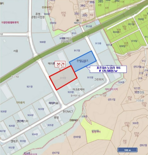 충북공장경매의 주소지는 충청북도 증평군 도안면 노암리 소재 "증평2산업단지" 내에 위치하며, 주위는 중소규 모의 공장 및 공업나지 등이 소재하는 지역으로서 제반 주위환경은 보통시 됨.