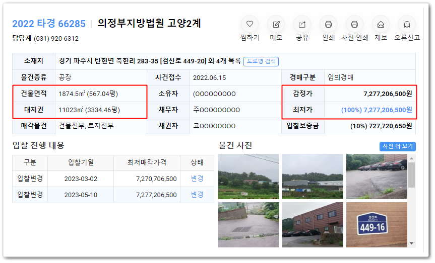 파주시공장경매의 사건번호 2022 타경 66285입니다.