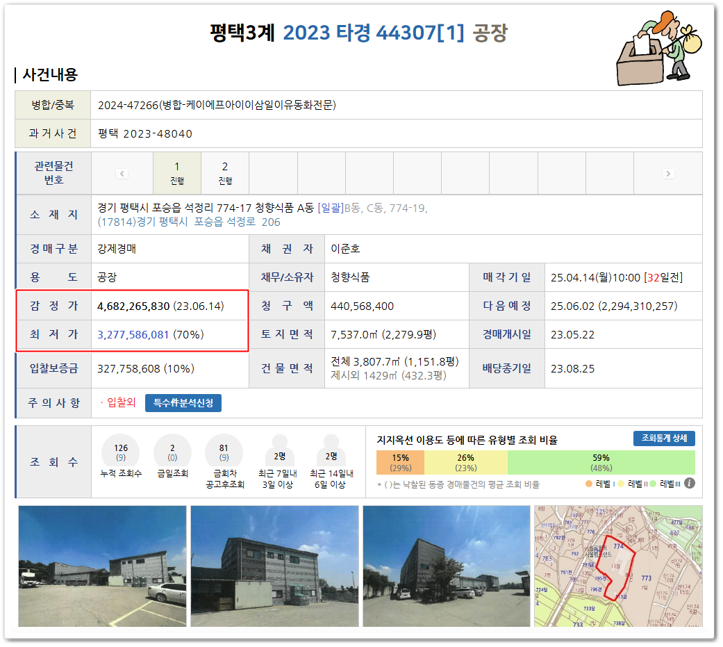 오늘 추천해 드릴 물건은 사건번호 2023 타경 44307 [1] 평택식품공장경매 물건입니다..