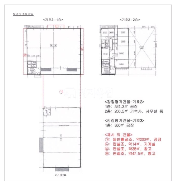 2012년에 2층 1개동, 1층공장 1개동, 기타 창고등이 혼재되어 있습니다.