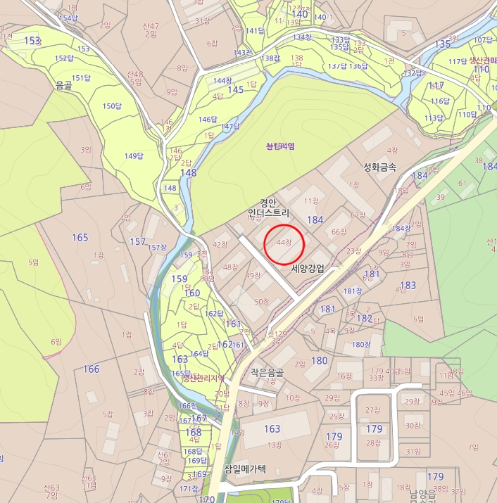 주변에는 공업용 부동산, 전,답,임야등이 혼재되어 있습니다.