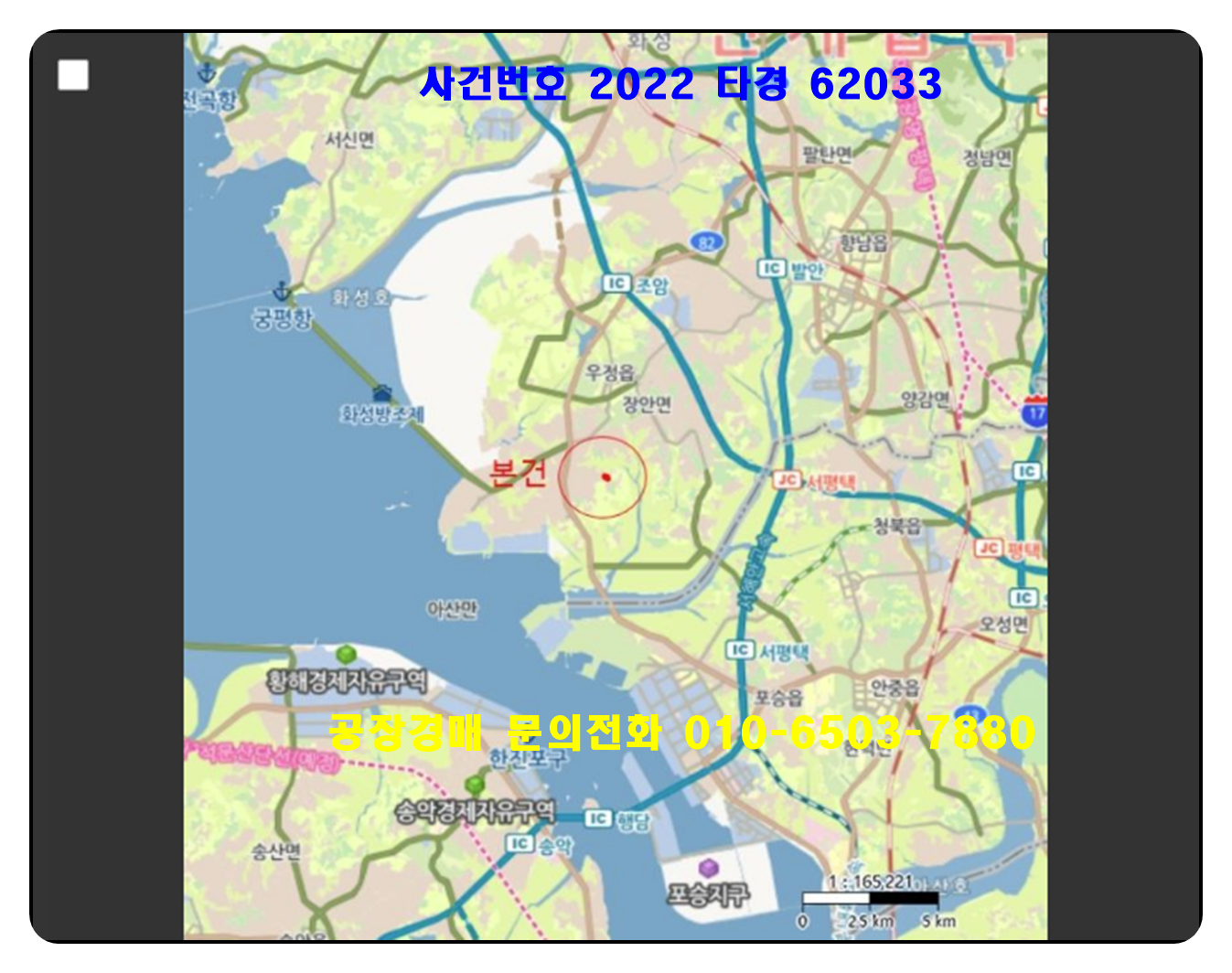 화성공장경매의 사건번호 2022 타경 62033 입니다 .