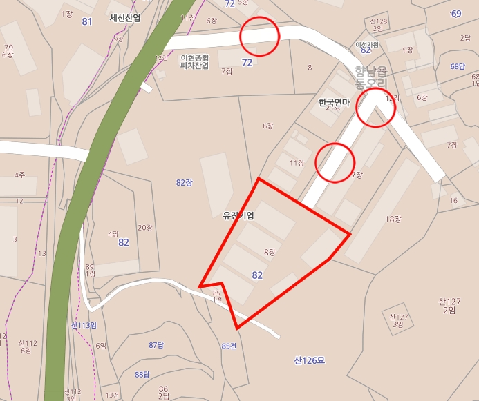 주위는 공장, 농경지, 임야등이 소재해 있습니다.