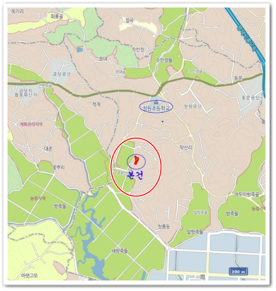 화성소형공장경매의 위치는 경기도 화성시 마도면 청원리 소재"청원초등학교"남서 측 근거리에 위치하며, 주위는 공장 및 농경지 등이 소재하는 도시외곽지역으로 주위환경 보통임.