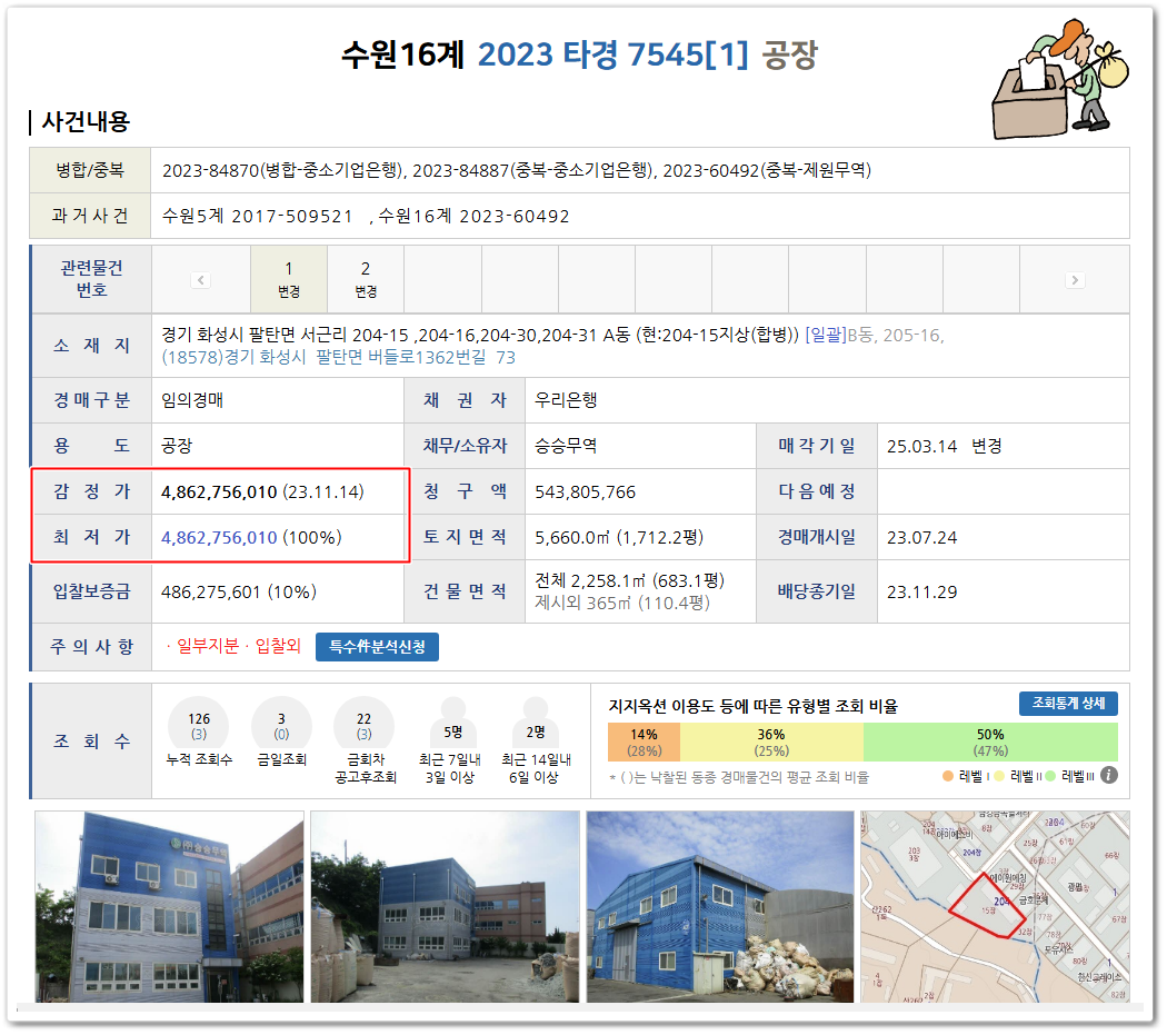 화성시공장경매 경기 화성시 팔탄면 공장경매전문 2023 타경 7545(1)
