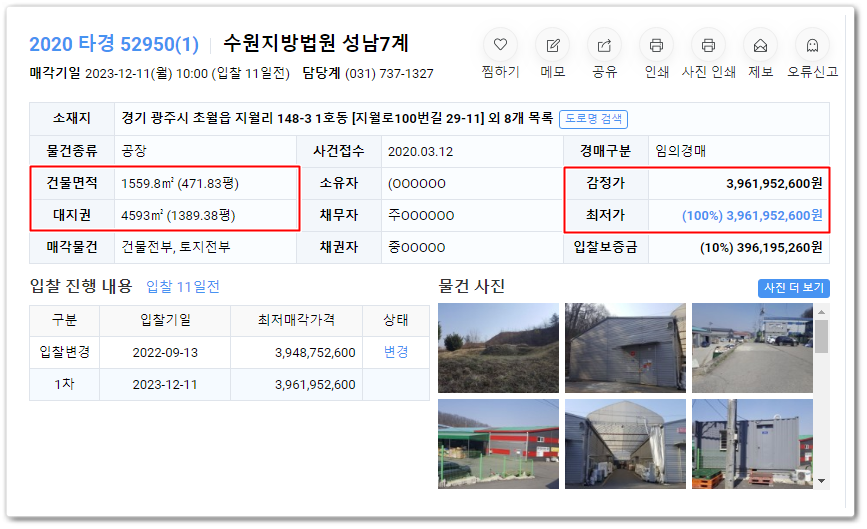 광주시공장경매 경기 광주시 초월읍 공장경매전문