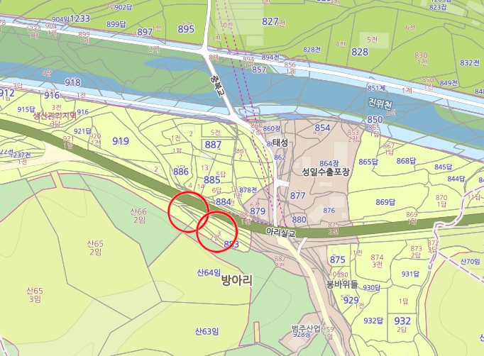 주위는 지방도변의 근린생활시설, 공장및 창고, 주택, 농경지,임야등이