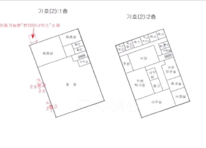 공장 1층 바닥면적은 187평이며 공장,제품실2,사무실,화장실등이 있고