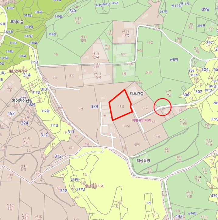 계획관리지역의 토지 1,501평에 건평 779평으로