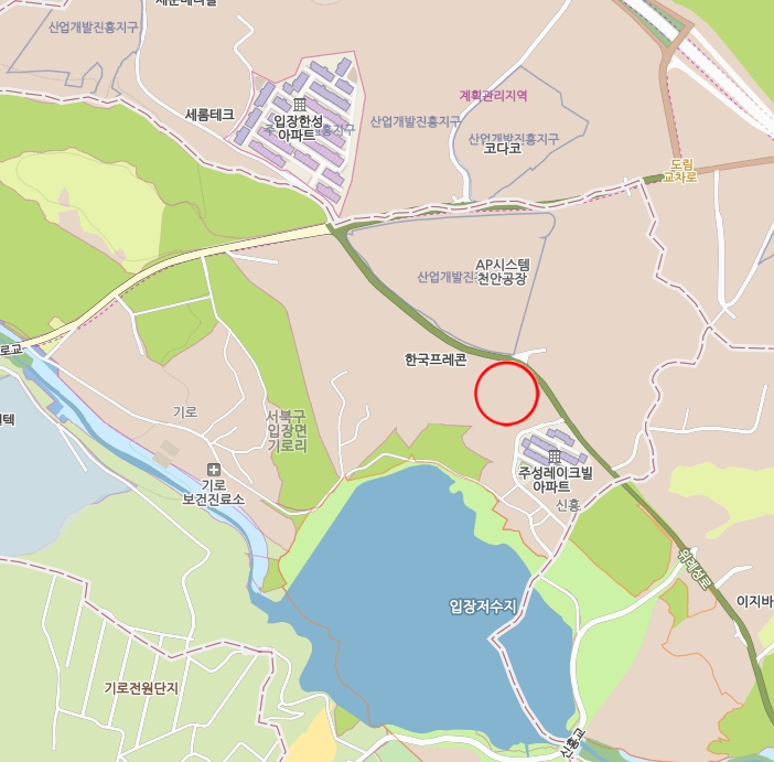 충남 천안시 서북구 입장면 기로리 입장저수지 북측인근에 위치해 있습니다.