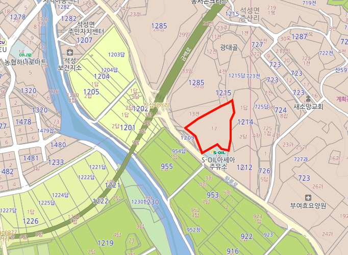 충남 부여군 석성면 증산리 석정면 사무소 남동측인근에 위치해 있으며
