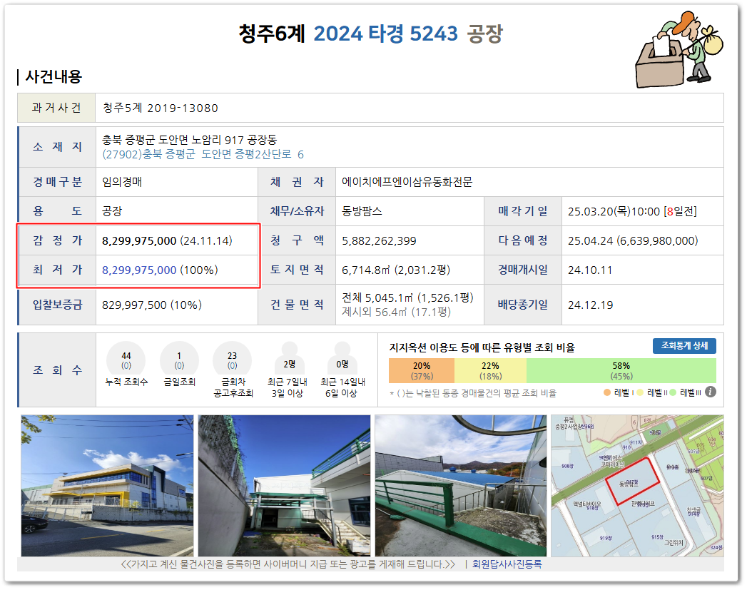 오늘 추천해 드릴 물건은 사건번호 2024 타경 5243 충북공장경매 물건입니다..