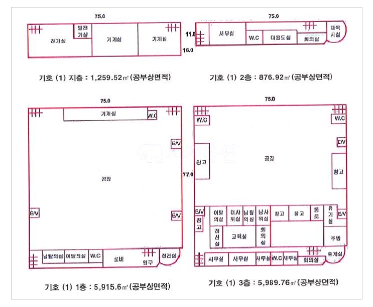 1층공장 바닥면적은 1,789평으로 클린룸 및 기계실, 접견실,회장실등으로 이루어져 있으며