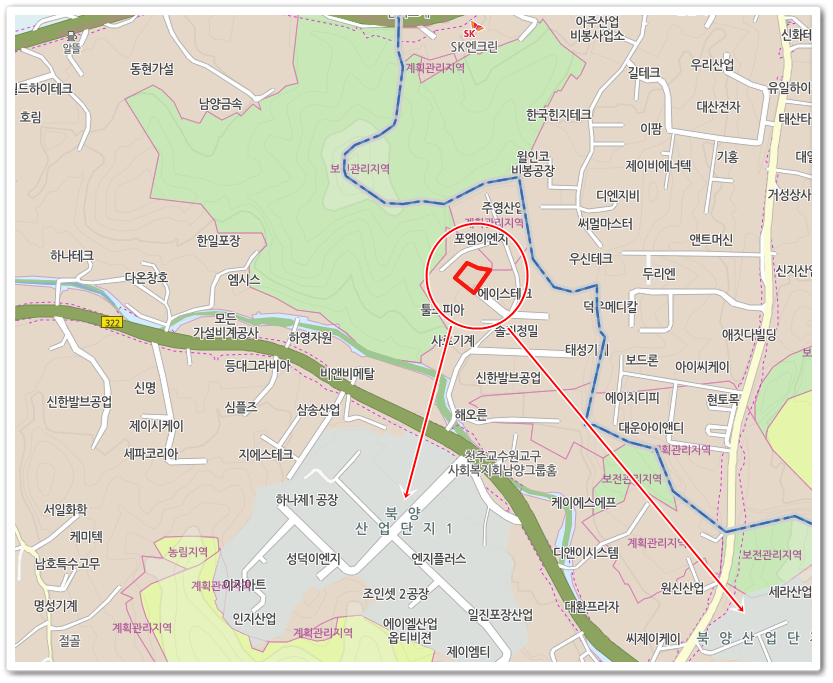 - 위치: 북양산업단지 북측 인근, 소규모 공장지대